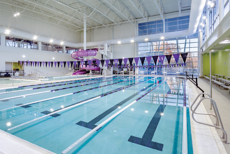 Curry Sports and Learning Center a building which includes a field house fitness center gymnastics facility learning center and aquatic center - all linked via a central Main Street atrium area.